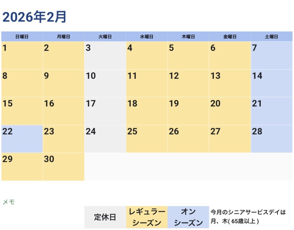 65歳以上の利用者がいる場合、平日のサービスデイに限り2,000円引きします。尚、”グリーンサイト”は対象外となります。ご了承ください。